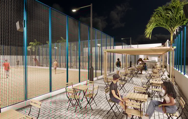 O projeto mostra como a arquitetura pode transformar espaços e criar novas possibilidades. Com área de banho, playground, 4 quadras, estacionamento, loja e uma integração estratégica entre restaurante, cozinha e área de suporte, essa arena prova que o esporte e o lazer podem acontecer em qualquer lugar—desde que bem planejados!
