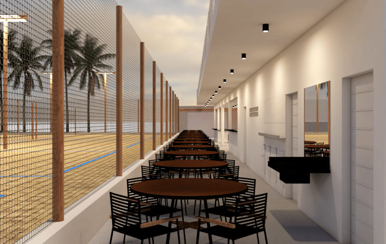 O projeto mostra como a arquitetura pode transformar espaços e criar novas possibilidades. Com área de banho, playground, 4 quadras, estacionamento, loja e uma integração estratégica entre restaurante, cozinha e área de suporte, essa arena prova que o esporte e o lazer podem acontecer em qualquer lugar—desde que bem planejados!