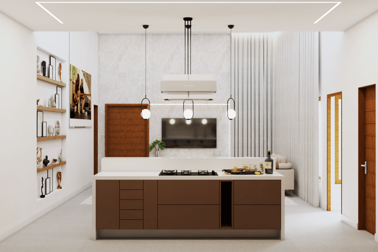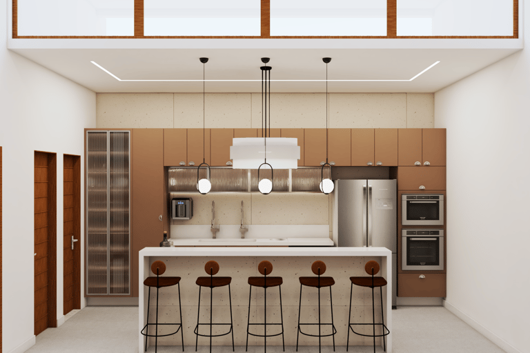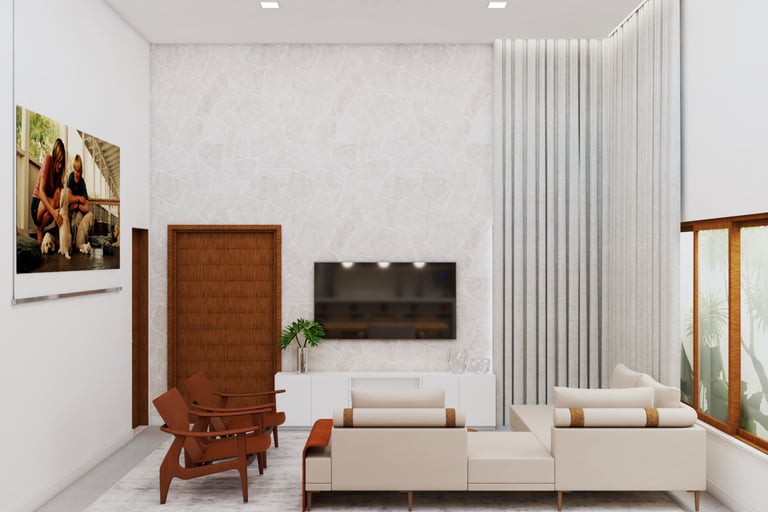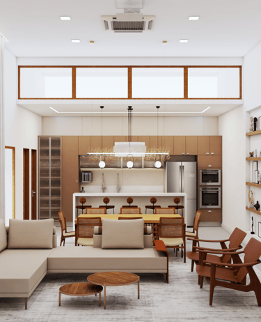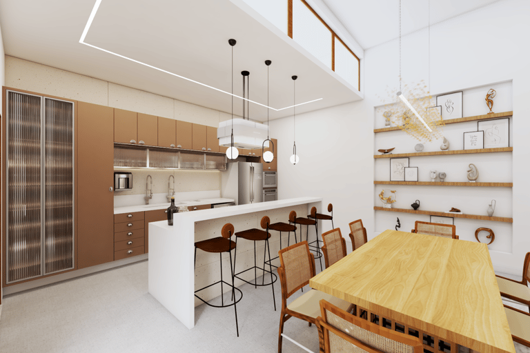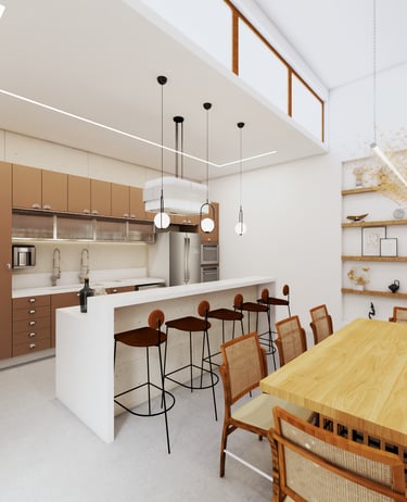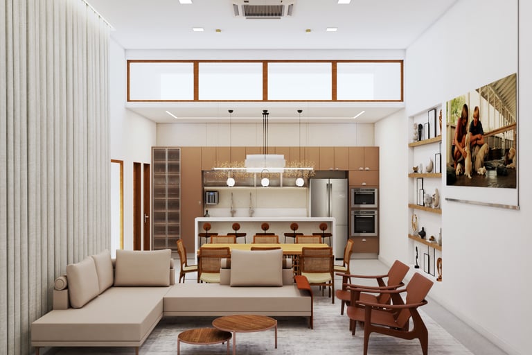 Desenvolvemos um projeto amplo que alia funcionalidade, sofisticação e aconchego, passando pela definição arquitetônica até os detalhes de interiores. Cada ambiente foi pensado para integrar praticidade e conforto, com paleta de cores neutras, uso marcante da madeira e iluminação estratégica que valoriza os espaços. O resultado é uma residência moderna, acolhedora e elegante, pronta para atender às necessidades do dia a dia com estilo.